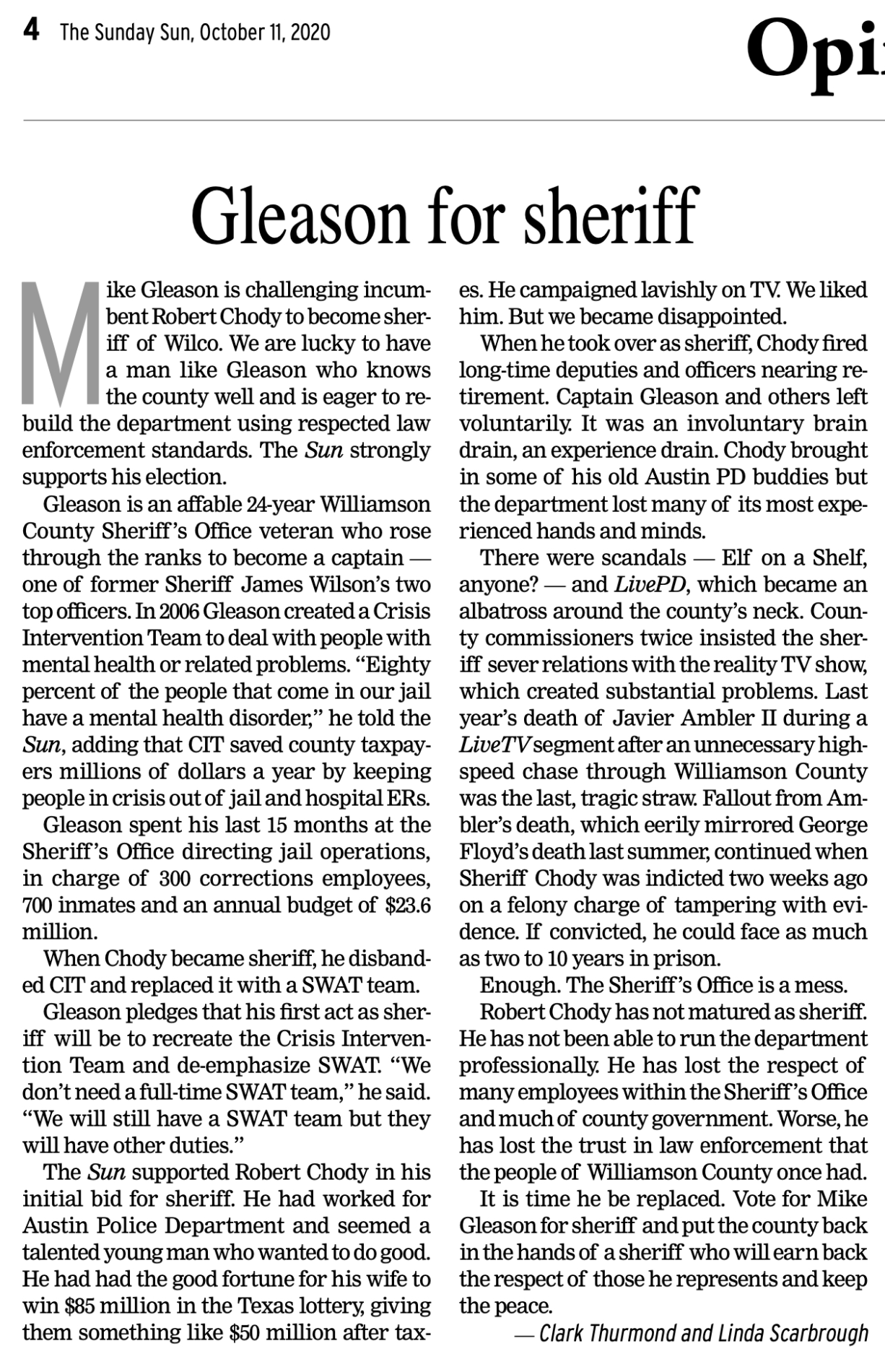 تويتر Buddy Falcon على تويتر Another Endorsement This Time From The Wilco Sun Both The Statesman And The Wilcosun Endorsed Robert Chody During His First Campaign Both Changed Their Mind This